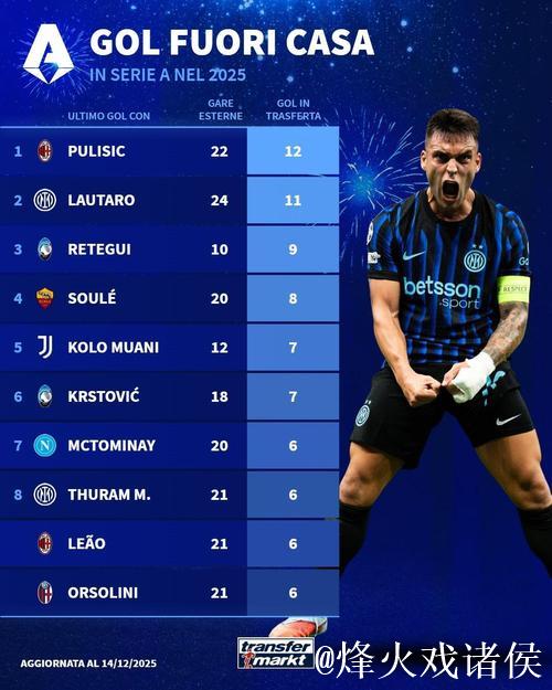 在刚刚落幕的2024-2025赛季意甲联赛中,一份极具含金量的榜单悄然出炉——客场射手榜。不同于往年由传统中锋垄断,今年的榜首被一位来自美国的“边路杀手”强势占据:AC米兰的克里斯蒂安·普利西奇以12